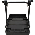 This battery tray is made of heavy-duty, non-corrosive black plastic. The tray includes an adjustable-height crossbar and two retaining bolts.