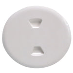 The Beckson Twist-out Deck Plate is designed to conceal its mounting fasteners under the quick twist cover. The low profile cover is self-centering, and quickly locks in place with a 1/8 twist. Three seperate sealing areas, each designed to chase water away from the plate opening, assure a watertight closure. The bayonet threads are non-jamming, self-cleaning and lift at the center for easy removal.