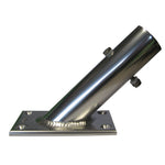 The AL7211CR (1-3/8"ID) is the perfect holder for boats in the 16 to 31 ft range. Its economical price and small footprint (3"x 5") make it our most popular center rigger holder. The receiving tube of this marine grade anodized holder is set at a 45 degree angle. This is the perfect angle for boats where the mounting position is low and the cockpit is not extremely deep (e.g. mounting on T-Tops, Hard Tops, or Fly-Bridges). Compatible poles are 12 or 14ft in length and come standard in bright silver anodized finish with a Black Spike.