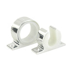 Simple and efficient rod storage. Constructed of Marine Grade Anodized Aluminum with a variety of Anodized Finishes. Rod Butt is inserted into Closed End of set. Vinyl insert protects the Rod Butt. Tip of rod is placed into Locking End of set and Nylon Locking Ring is rotated to lock it in. Will support the heaviest of rods. Can be mounted Horizontally, Vertically or Overhead.
