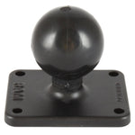 The RAM-202U-225 consists of a 1.5" diameter rubber ball connected at right angles to a 2" x 2.5" rectangular base. This mount has pre-drilled holes at each corner of the base plate.