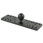 The RAM-B-111BU consists 1" diameter rubber ball connected to a flat 6.25" x 2" rectangle base. The base contains different combinations of pre-drilled holes which will match up to many electronic devices and mounts, including Marine GPS, CB Radios, Ham Radios, Gimbal Brackets and more.