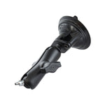 The RAM-B-166-237U consists of a 3.25" suction cup locking base, double socket arm and 1" rubber ball that contains a 1/4"-20 camera male thread. The male thread matches most standard camera and camcorder female threads found on the bottom of the camera. The mount contains adjustment points at both ends of the double socket arm; this allowing for almost infinite adjustment and perfect viewing angles. The suction cup, twist lock base is designed to have a strong hold on glass and non-porous plastic surfaces, including RAM adhesive disks.