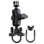 The RAM-B-149Z-A-GOP1U consists of a zinc coated u-bolt base, SHORT size double socket arm and 1" diameter ball with custom GoPro Hero adapter. The mount is designed with a RAM 1" diameter patented rubber ball and socket system that has adjustment points at both ends of the double socket arm; this allowing for almost infinite adjustment and perfect viewing angles. Included in this package is hardware that will accommodate rails from 0.50" to 1.25" in diameter. The base includes black cover caps to be placed over the exposed ends of the u-bolt. The included composite rail adapter can narrow the rail to a minimum width of 0.5".