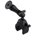 The RAP-401-202U consists of the large Tough-Claw base, double socket arm and round base adapter. The RAM Tough-Claw: is the perfect mounting base for quick and easy tool-less installation and removal on round, square, odd shaped rails and bars. The Tough-Claw can be clamped on rails from 1" - 2.25" outer diameter. The round base adapter contains the industry standard universal AMPS hole pattern, which will connect to a large variety of RAM Mount and third party cradles. The mount is designed with a RAM 1.5" diameter patented rubber ball and socket system that has adjustment points at both ends of the double socket arm; this allowing for almost infinite adjustment and perfect viewing angles.
