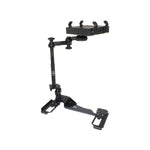 This No-Drill Laptop Stand System installs quickly and easily into the specified vehicles using the existing hardware of the passenger side seat rails. This configuration provides a telescoping feature that ranges from 12 to 18 inches. Dual swing arms provide articulation and 12 inches of reach for passenger and driver access to the mounted device. Patented rubber ball and socket joint provides additional adjustment as well as shock and vibration isolation. The RAM Tough Tray is spring loaded to accommodate 10" to 16" wide laptops & (17" wide screens). The tray features four adjustable retaining arms with rubber grip feature. These arms can be moved both vertically and horizontally. This allows for a custom fit for varying thicknesses of laptops and the freedom of not blocking ports or drives. A screen support and USB light are also available to accessorize the tray. Hole patterns on perimeter of tray facilitate the mounting of additional RAM systems to support GPS or other electronics.