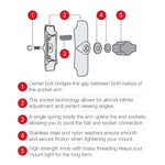 The RAM Quick-Grip™ Flat Surface Mount consists of a 2-hole diamond drill-down base, a double socket arm, and a spring-loaded cradle for supporting most phones. Integrating the industry standard AMPS hole pattern, this mount can connect to any flat surface or to the side of the RAM Tough-Tray™. The double ball and socket design provide adjustment points at both ends of the socket arm with the turn of a single knob, allowing you to set your phone to the optimal viewing position.