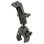 The RAM® Tough-Claw™ can be clamped on rails from 0.625" - 1.14" outer diameter. The diamond base adapter contains the industry standard universal 2-hole AMPS hole pattern, which will connect to a large variety of RAM® Mount and third-party holders. The mount is designed with a RAM® 1" diameter patented rubber ball and socket system that has adjustment points at both ends of the double socket arm, allowing for almost infinite adjustment and perfect viewing angles.