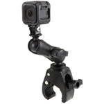 The RAP-B-400-GOP1U consists of the small Tough-Claw base, double socket arm and 1" diameter ball with custom GoPro® Hero adapter. The RAM Tough-Claw is the perfect mounting base for quick and easy tool-less installation and removal on round, square, odd shaped rails and bars. The Tough-Claw can be clamped on rails from 0.625" - 1.5" outer diameter. The GoPro® Hero adapter attaches directly to the under-side of the camera, replacing the factory mounting bracket.