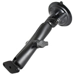 The RAM-B-166U-C consists of a 3.25" suction cup locking base, LONG double socket arm and diamond base end. The mount is designed with a RAM 1" diameter patented rubber ball and socket system that has adjustment points at both ends of the double socket arm; this allowing for almost infinite adjustment and perfect viewing angles. The suction cup, twist lock base is designed to have a strong hold on glass and non-porous plastic surfaces, including RAM adhesive disks.