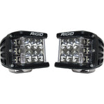 One of RIGID's most versatile, compact lighting solutions just got better with the RIGID D-SS PRO, Dually-Side Shooter Professional Race Output LED pod. Perfect for any application that requires a wide spread beam, including A-Pillars, Fog Lights, and motorcycle applications. The D-SS PRO incorporates powerful optics and recently improved LED technology for greater output with the added benefit of additional LEDs aimed to the side for a much broader beam. The D-SS PRO packs a powerful punch with up to 102% more raw lumens depending on the optics chosen The D-SS PRO fixtures boast up to 120-degrees of horizontal lighting coverage when used in pairs or when used in the single light applications. The main forward-facing LEDs are available with RIGID's advanced Spot, Flood, or Driving optics, so there's a D-SS PRO lighting solution for nearly any application. The D-SS PRO LED lights are available in pairs with three side-shooting LEDs on one side of each fixture, or in single applications with a pair of side-shooting LEDs on both sides of the fixture. Only RIGID provides a broad, powerful lighting solution in such a compact package.