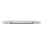This is a surface-mount, low-profile E-330 LED compact engine room light. The white plastic end cap features a notch on the wire side to allow side access for the connection wires. A low-profile fixture extends a mere 5/8" from the mounting surface.