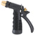 The ergonomically-shaped, die-cast zinc hose nozzle body has a soft, black, vinyl grip for a comfortable hold. It includes a hold-open clip for a constant water flow and has a stainless steel spring.