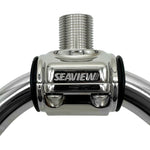 The Seaview 316 S.S. Rail Mount is designed to fit 1", 1-1/8” and 1-¼” rails and is for mounting GPS, weather, or VHF antennas. The unique two-piece design clamps to a rail and keeps wiring completely hidden inside the mount and railing. The 1"-14 threads accept the most common GPS or VHF antennas. Cast of solid 316 stainless steel with rubber bushings.