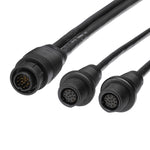 This Y cable allows for the connection of a MEGA 360 Imaging transducer and a 14-pin HW / MDI+ transducer (including Built-in MEGA Imaging) to the same compatible Humminbird fish finder.