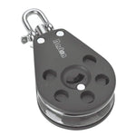 Designed for low friction and longevity in harsh marine environments, the Ratchet Block body is manufactured from a composite of high-density nylon and glass fiber reinforced polymer with a high level of UV protection. Internal components are of marine grade 316 stainless steel and the 12 faced aluminum sheave is anodized in gunmetal silver