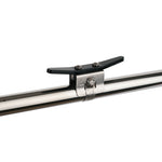 A versatile cleat easily mounts to a stanchion or rail 7/8" and 1" diameter ( will accommodate larger sizes with longer clamp). Construction consists of a husky Stainless Steel bracket and clamp with a 4-1/2" nylon coated aluminum cleat. Use them for fenders and flag halyards. Installation is easily made with a screwdriver.