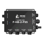 Our F-HB-2-FS5 Hub simplifies installation allowing for 2 RGBW fixtures to be connected to one power source. It also allows you to daisy-chain the data signal between those 2 fixtures, as well as between additional fixtures on other hubs.