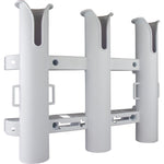 The Triple Threat™ Three Pole Rod Holder is made in the USA with recycled materials. Features the ability to hold bait, cast, and fly-fishing rods/reels. This three-pole, side-mount rod holders come equipped with a built-in knife and plier storage with holders that can accommodate up to 16 different fishing lures. Constructed of one-piece injection molded, UV stabilized, polypropylene construction. No assembly is required. This is a fisherman’s dream and is a must-have for any boat, kayak, or dock!