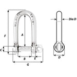 Self-Locking Long D Shackle - 10mm Diameter - 13/32"Features:  Self-locking D shackle forged in grade 316L stainless steel The pin is locked into one of the indentations No risks of loosening due to vibrations Outstanding...