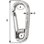 Symmetric Carbine Hook - Length 100mm - 13/32"Features: Grade 316L stainless steel carbine hooks Symmetrical shape With eye to attach a webbing or a splicing Applications:For fastening applications Specifications: Materials 316L stainless steel grade Length (inch)...