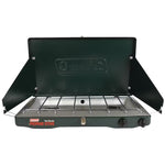 Cook breakfast, lunch, and dinner on a dependable stove that packs up easily with the Classic Propane Gas Camping Stove, 2-Burner. The 2 burners put out 20,000 total BTUs of grilling power and are shielded from the wind by adjustable WindBlock™ panels. Rest assured, your stove will perform consistently even in extreme conditions thanks to the PerfectFlow™ pressure regulator.