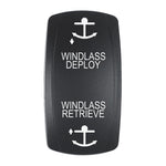 Actuator - 'WINDLASS DEPLOY | WINDLASS RETRIEVE' for V Series Contura Switches - Black - Laser Etched (Top/Bottom Light)