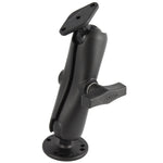 The RAM-138U consists of a 2.5" diameter round base that contains the universal AMPs hole pattern, double socket arm and diamond base adapter. The mount is designed with a 1.5" diameter patented rubber ball and socket system that has adjustment points at both ends of the double socket arm; this allowing for almost infinite adjustment and perfect viewing angles. The hole pattern found on the diamond base adapter will connect to most RAM cradles. The included RAM's patented design dampens shock and vibration, helping to extend the life of your device.