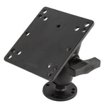 The RAM-101U-B-246 consists of a short double socket arm, 2.5" diameter round base with the universal AMPS hole pattern and 4.75" square plate with the VESA hole pattern. The VESA plate contains a 75mm X 75mm and 100mm X 100mm hole pattern. Designed into the mount is a 1.5" diameter patented rubber ball and socket system with adjustment points at both socket ends of the arm. Rubber ball and socket technology allows for almost infinite adjustment and perfect viewing angles.