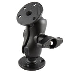 The RAM-D-101U consists of (2 qty) 3.68" diameter round bases and SHORT length double socket arm. The 3.68" diameter round bases have pre-drilled holes, including two holes at 180 degrees and three holes at 120 degrees. Designed into the mount is a 2.25" diameter patented rubber ball and socket system with adjustment points at both socket ends of the arm.