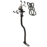 Consists of the universal spring loaded X-Grip II holder and RAM POD I universal No-Drill vehicle mount. The base of the mount clamps to your seat rail without any drilling necessary. Connected to the base is a 18" rigid flexible rod that can be bent to position your device to it's optimum viewing location. The RAM POD I will hold everything you need safely and securely.