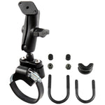 The RAM-B-149Z-2U consists of a steel strap base, u-bolt bases, double socket arm and diamond adapter base. The diamond adapter base has a hole pattern that matches the industry standard AMPS hole pattern and will connect to a large variety of RAM Mount and third party cradles. Designed into the mount is a 1" diameter patented rubber ball and socket system with adjustment points at both ends of the double socket arm. With a twist of the arm knob, you can move the mount to your optimum viewing position. Designed for a clean installation, the RAM strap mount will accommodate most common roll bar sizes on UTV's, allowing for the placement of the RAM rubber ball base. This mount can also be attached to smaller diameter handlebars on ATVs using the included hardware. With the ball base in place, you have the foundation for mounting everything from GPS Devices, RAM Aqua Boxes, Spotlights and Radios.