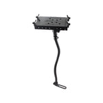 This kit includes the RAM-234-6 with the RAM POD I with a 1" diameter ball and socket. This universal vehicle mounting base quickly and easily installs into a variety of vehicles and other applications. The RAM POD I has a maximum extension of 18" but can be cut to desired length. The black steel foot can be attached to the inside seat rail bolt of the passenger or any existing bolt.