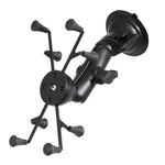 Consists of the universal spring loaded X-Grip II? holder, socket system and 3.25" suction cup twist lock base. The suction cup base is designed to have a strong hold on glass and non-porous plastic surfaces, including RAM adhesive disks.