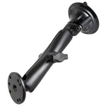 Twist Lock Suction Cup Mount with Long Double Socket Arm & 2.5" Round Base - AMPS Hole Pattern (9" Length)