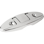 This oval folding cleat incorporates a positive locking feature with an audible click into the open/closed positions for easy rigging.