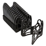 Camco RV 30' Sidewinder Plastic Sewer Hose Support is sturdy and lightweight. Plastic support with strong snap-fit hinges has deep cradles to hold the sewer hose in place without straps. No staples to rust. Easily positions around obstacles and stays where you put it. Won't creep closed. The bottom of the Sidewinder cradle is 7.25" high at its highest point and 4" high at its lowest point. Patented.