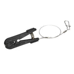 Spring-action clip opens quickly and easily with finger pressure. 2- to 12-lb. tension range. The deeper the line is set back in the pads, the greater the pressure.