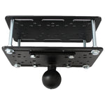 Sometimes the simplest solution makes the most sense. The new RAM Lift Truck Back-Up Mounting Plate is the ideal way to get a RAM ball attached to most any lift cage or overhead guard. Utilizing two identical plates of stamped steel with numerous common hole patterns and slots makes attachment a breeze. Three popular ball sizes: 1.5", 2.25 & 3.68" diameter may be attached to this plate system. Up to 2 balls may be attached to the same plate for multiple applications.
