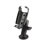 The RAM-B-138-GA41U consists of a 2.5" diameter round base with the universal AMPS hole pattern, double socket arm, diamond adapter base and high strength composite cradle. The mount is designed with a RAM 1" diameter patented rubber ball and socket system that has adjustment points at both ends of the double socket arm; this allowing for almost infinite adjustment and perfect viewing angles.