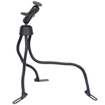 At right angles to the base of two legs are feet with mounting holes. Simply place the holes into the passenger seat mounting bolts and adjust the mount to the required height with the rigid aluminum rod legs. The third leg on the RAM POD III should also be adjusted to help support the mount. The rigid aluminum rod arms will hold everything you need safely and securely.