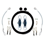 Complete rigging packages that allow you to run One (1) lines on each rigger. this kit includes (2) exclusive Rupp single pulley shock cords, 160ft of BLACK MONO halyard lines one pair of Rupp NOK-OUT release clips. (2) Nylon ball stops, (2) Strap Eyes, (4) Heavy Snap Swivels, (4) Crimps-Nickel.