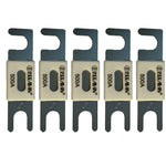 Victron Energy's ANL fuses are bolt-down, fast-acting, and have a higher short-circuit breaking capability than MEGA fuses. This particular pack of Victron ANL fuses contains FIVE 500-amp fuses.